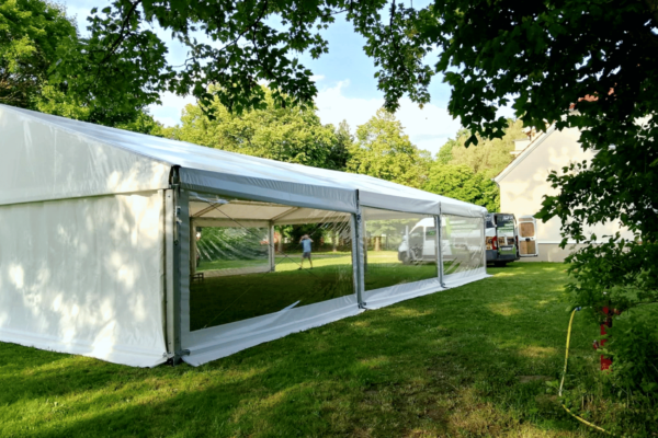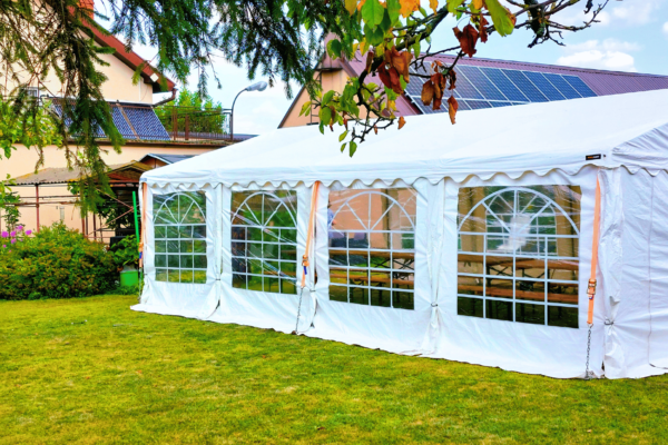 Nasze namioty imprezowe występują w różnych rozmiarach. Zależnie od własnych potrzeb można wybrać idealnie dopasowaną wielkość i rodzaj konstrukcji. W naszej ofercie znajdują się duże namioty imprezowe (hale namiotowe) o rozmiarze maksymalnym 10×20 metrów, dostępne również z podłogą drewnianą na stelażu aluminiowo-metalowym, a także mniejsze namioty o wymiarach 6×12 – 5×10 – 5×8 – 5×5 oraz 4×6 metrów.